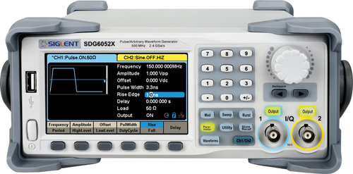 SDG6022X je dvoukanálový programovatelný generátor funkcí (technologie TrueArb a EasyPulse) s šířkou pásma do 200 MHz, vzorkováním 2,4 GSa/s a 16-bitovým převodníkem. Výstupní úroveň je až 20 Vpp, délka programovatelného průběhu max. 20 000 000 bodů.