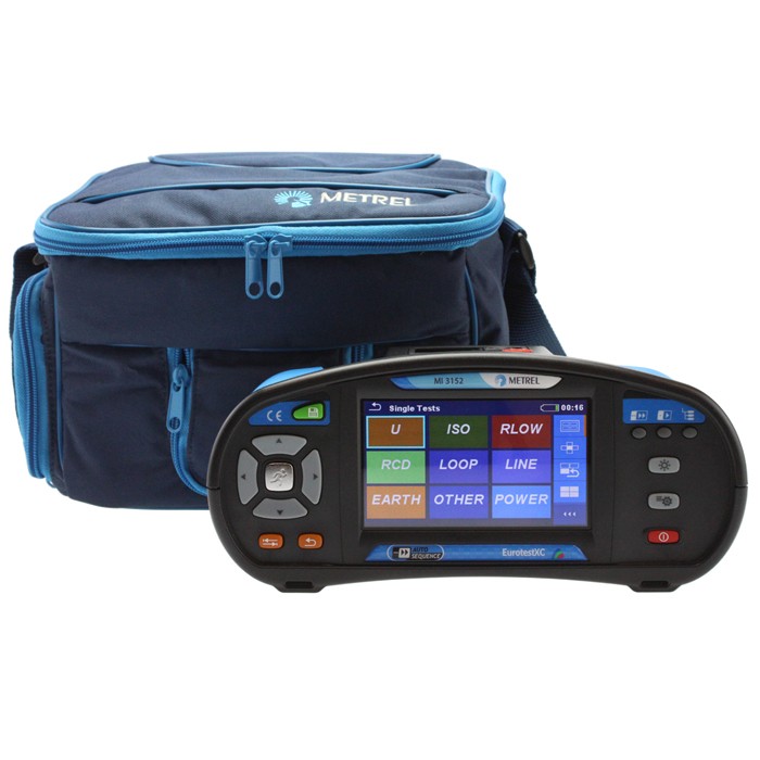 MI 3152 EU (Eurotest XC) je nová verze oblíbeného multifunkčního testeru rozvodů nn, určená pro prvotní i periodické testování domácích a průmyslových instalací - jednofázových i vícefázových. MI 3152 je navržen pro testování TT, TN, IT uzemňovacích systémů, a také medicínských instalací. Novinkou jsou předdefinované mini autosekvence: TT (U, Zln, Zs, Uc); TN/RCD (U, Zln, Zs, Rpe); TN (U, Zln, Zlpe, Rpe); IT (U, Zln, Isc, Isfl, IMD). Dalšími novinkami jsou např. měření výkonu, analýza harmonických, test RCD i pro typy F, B, B+, bluetooth komunikace apod.
