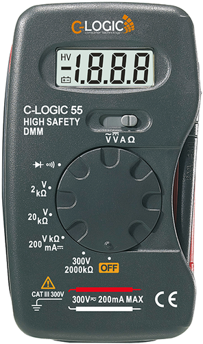 C-LOGIC 55 je kapesní multimetr s integrovanými testovacími vodiči.
