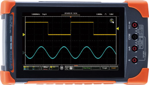 GW Instek GDS-210 je dvoukanálový kompaktní osciloskop s vestavěným multimetrem, vědeckou kalkulačkou apod. Šířka pásma 100 MHz; citlivost 2 mV/dílek ÷ 10 V/dílek; 5 ns ÷ 100 s/dílek; přesnost ±20ppm. Vzorkování až 1 GSa/s; 36 sad automatického měření; paměť až 1 M bodů/kanál; 7" kapacitní plně dotykový (vícedotykový) LCD displej (800 x 480 px); možnost používání na výšku i na šířku; záznam 30000 po sobě následujících průběhů s možností vyvolání; současné měření AC/DC napětí a proudu (5000 čítání), a teploty; měření odporu, test diod a kontinuity (<15Ω); dlouhodobý TREND PLOT; cca 4,1 hodin provozu na baterie (6100 mAh; 2 h nabíjení); USB rozhraní; interní Flash disk 120 MB; automatická volba rozsahu, Max, Min, Hold. Rozměry a hmotnost (včetně baterie) 240 x 136 x 60 mm; hmotnost 1,5 kg