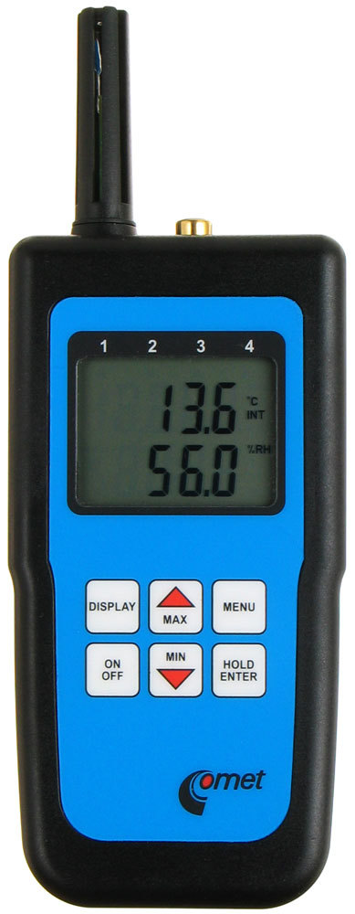 Teploměr - vlhkoměr (záznamník) se současným zobrazením teploty a relativní vlhkosti, po přepnutí zobrazení teploty rosného bodu, sensory teploty-vlhkosti pevně spojené s přístrojem. Konektor Cinch pro připojení další teplotní sondy s čidlem Ni1000. Prostor. teplota -10 až 60°C, relativní vlhkost 5 až 95%, rosný bod 30 až 95 % RH. Zobrazení rozdílu teploty dotykové sondy a rosného bodu. Akustický a optický alarm pro signalizaci tohoto rozdílu, např. pro hlídání kondenzace a vzniku plísní. 3 typy záznamu s propojením na osobní počítač - kapacita vnitřní paměti 16000 záznamů.