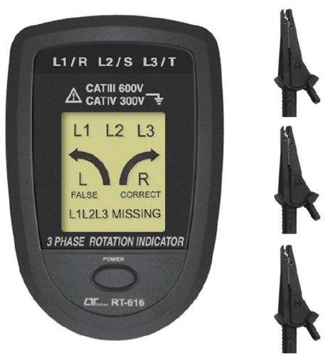 LUTRON RT-616 - tester sledu fází, Indikace chybějící fáze.100 - 660V, 45 až 70Hz.